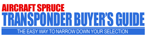 The Aircraft Spruce Transponder Selector is a unique web interface which allows you to select and compare transponders by pricing and features such as mode capability, frequency, and display type. Choose from the most comprehensive collection in the industry including manufacturers Becker, Narco, Microair, Garmin, and Bendix/King. Using the Buyer's Guide you can select the product which best fits your requirements. When you are ready to place your order, you can be assured that Aircraft Spruce provides the best pricing available on every product. Thank you for choosing Aircraft Spruce as your avionics supplier.