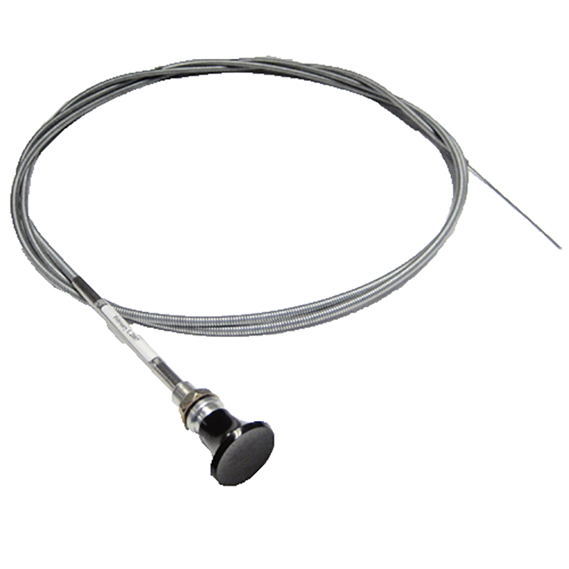 (Solid Wire End) Simple design for push-pull operation with low friction characteristics. Has .050" dia. stainless steel wire core in flexible metal casing with polyethylene liner. May be shortened as required. Max. travel 3-1/2". Available with black or red plastic knob. Made in USA |