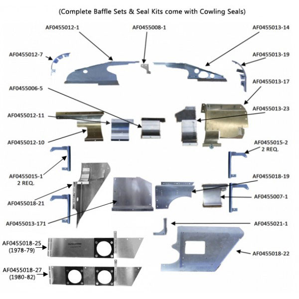 These baffles are FAA/PMA approved, have the silicone seals attached, and arrive ready to install.