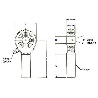 • Load ratings apply only to rod ends without grease fittings. For load ratings with fittings, please consult our engineering department.