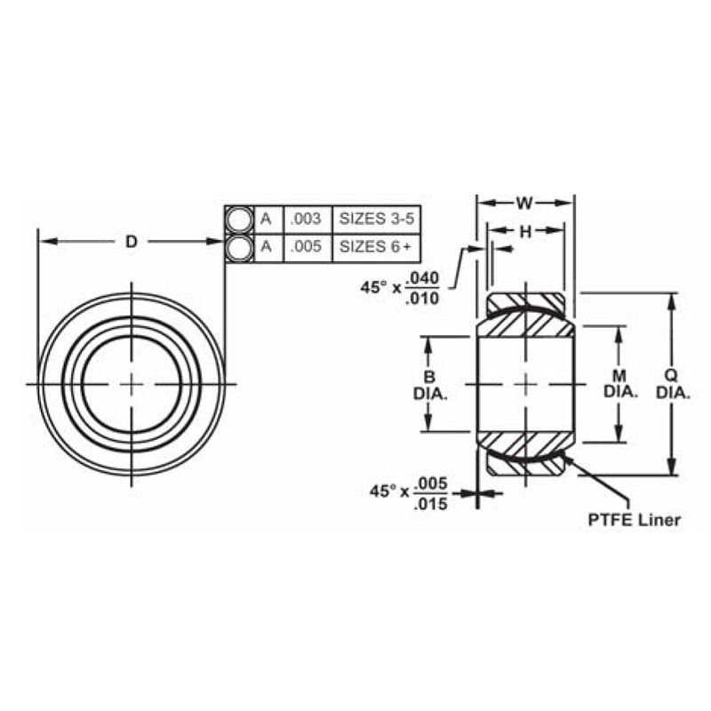 Bearing - Inner Diameter: 1/4" Outer Diameter: 21/32", Plain, Self-Lubricating, Self-Aligning, Low Speed, Narrow, Chamfered Outer Ring, -65°, F To 325°, F. |