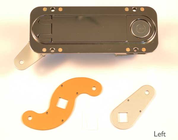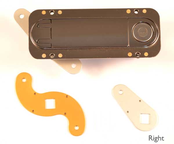 The locking latch has a 90° rotation handle that opens by pushing the key side of the base face. This deflection opens with the help of a spring and by rotating the handle you will pull locking pins out of the receptacles that are mounted to the inside skin of the Aircraft and outside of baggage door frame. Face opening dimension H 1 3/8” W 5.5” with radius at both ends and a .090 deep lip that will insure a flush mounting. Latch base has 4 10-32 anchor nuts for mounting to the door. The base is made of aluminum and nickel plated. Internal parts are nickel plated or stainless. Locks are weather resistant with 90° cam rotation. Keyed different 2 key pull and stainless shutter mechanism. Baggage door bases can be ordered left or right. |