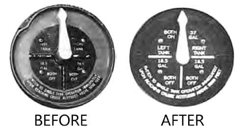 This new fuel selector plate is billet machined and anodized, with the text engraved on the plate. It is an efficient one piece design which is easy to install & factory guaranteed. FAA-PMA approved. For Cessna 170 with 37 gallon tank. |