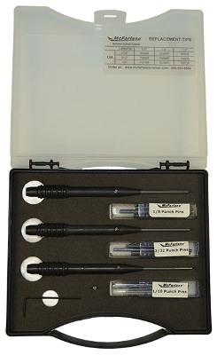 Always wear eye protection when using punches. Do not reuse broken punch tips. |