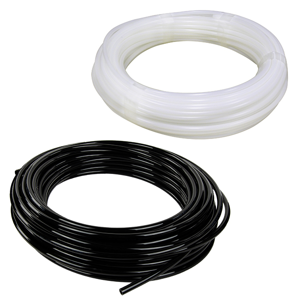 Nylo-Seal type "N": Semi-rigid natural color (N) tubing is made of Nylon-II and is far superior to other types of Nylon tubing. It does not depend on moisture for flexibility and does not become brittle. It has excellent resistance to flexural fatigue and can be used where there is vibration or tube movement. Self-extinguishing under A.S.T.M. Test D635-44. N Tubing is rated to 1000 lbs. and is excellent for instrument lines and other low pressure applications. Nylo-Seal type "NSR": Semi-rigid black (B) color or Natural (N) tubing is made of Nylon-II and is far superior to other types of Nylon tubing. It does not depend on moisture for flexibility and does not become brittle. It has excellent resistance to flexural fatigue and can be used where there is vibration or tube movement. NSR Tubing is rated to 2500 P.S.I. and is excellent hydraulic brake lines after verifying it is appropriate tubing for your application. Note: Brass Poly Flo fittings cannot be used with NSR tubing listed. Use SAE fittings, see Accessories tab. |