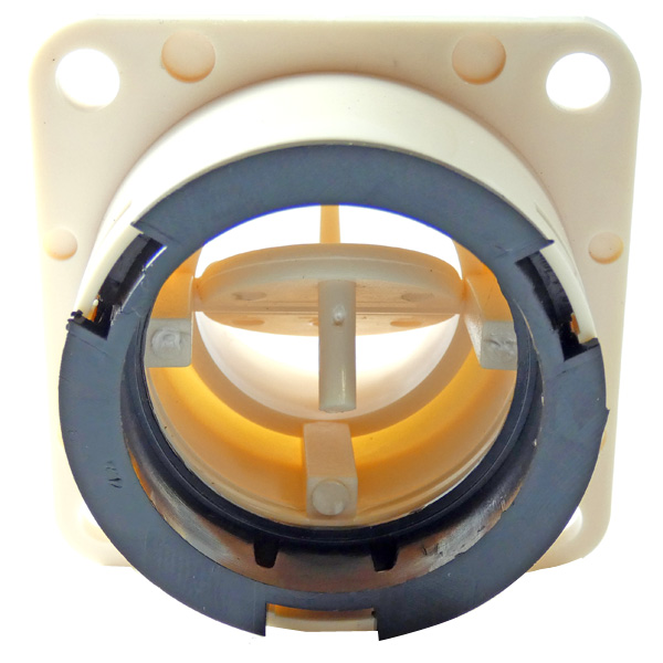 These ball and socket air vents are injection molded T grade ABS. The vent orifice is 1" dia., and the ball swivels 45°. The mounting flange is 2-1/8" square, and the distance between mounting hold centers is 1- 11/16". Mounts in 1.75" dia. hole & uses 1-3/4" ducting. |
