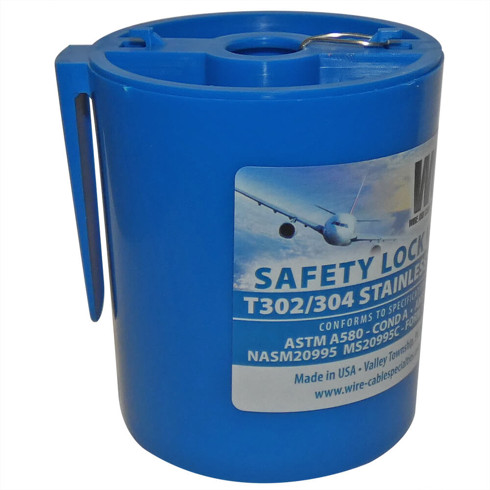 Stainless steel safety wire furnished in convenient 1 lb. dispensing container. Available in Type 302/304 stainless steel (soft temper) per MS20995. |