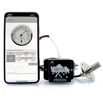 Metis extends Aithre's oxygen monitoring technology to in-flight atmospheric conditions. Using a single under the wing elegant probe, the Metis provides real-time temperature, humidity, and dewpoint readings, enabling you to monitor for icing and cloud levels relative to your aircraft.