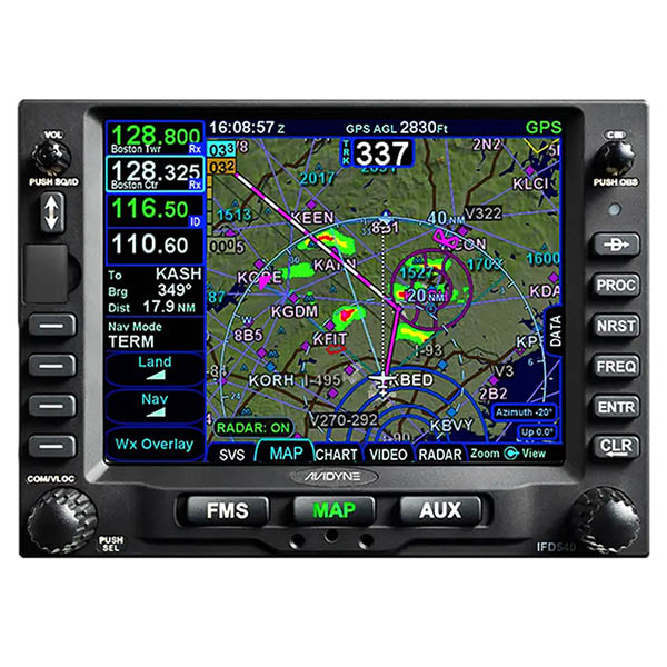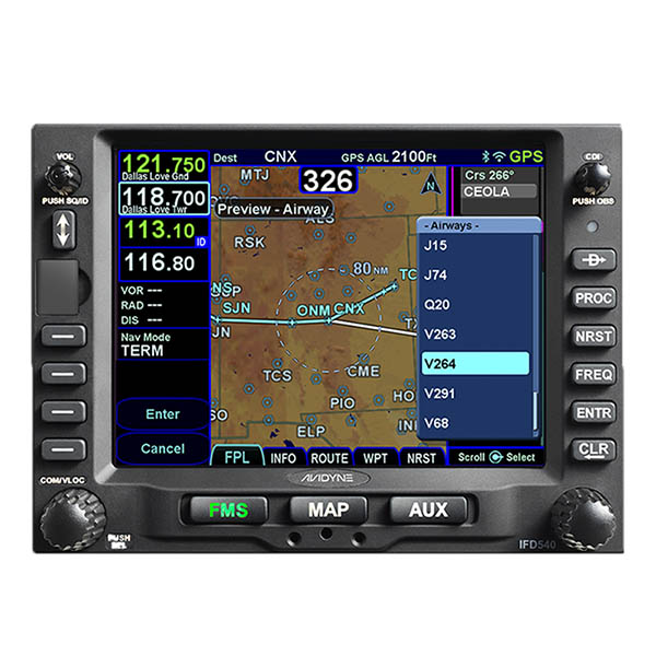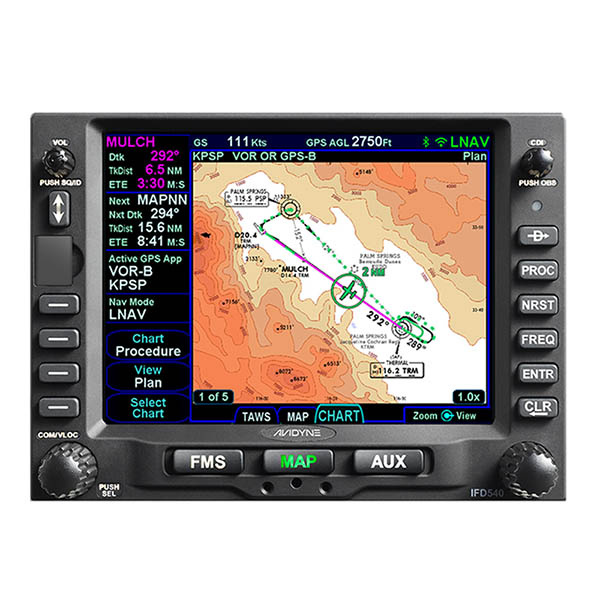 Avidyne’s IFD Series of navigators feature the most intuitive Flight Management System in an easy-to-use, yet powerful design. The IFD540 is everything a pilot could want in an FMS/GPS/COM Navigator. It’s award-winning Page & Tab user interface eliminates nested menus, allowing you to go to any page in two clicks or less. Its innovative Hybrid Touch allows pilots to perform virtually all functions using its knobs and buttons, or via the versatile touch screen interface—giving you the choice based on user preference. The IFD540 has FMS Preview that lets you easily create, upload and review your flight plans visually with changes shown on the screen before selection plus in-flight changes are a snap because of Avidyne's patented GeoFill™ predicts your next entry based on your location, not the sequence in the database.