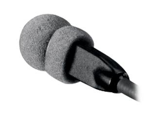 This foam replacement microphone screen reduces ambient noise and helps keep wind pressure from activating the microphone. Screen slides easily over headset microphones and is secured with supplied rubber grommet.