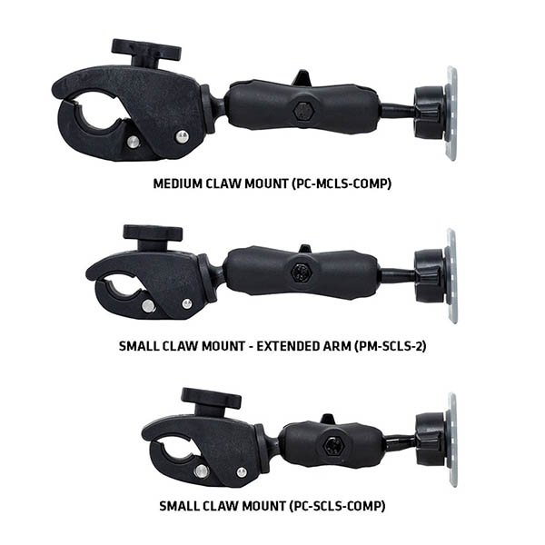 With incredible clamping power from the Tough-Claw Clamp, the PIVOT Claw Mount will not lose its grip, ensuring that your device remains exactly where you mounted it regardless of flight conditions. The small clamp works on round, square, and odd-shaped rails and bars ranging from 0.625” to 1.5” in diameter, and flat surfaces ranging from 0” to 1.14” in thickness. It is also available with an extended arm for applications that require a little more reach. The medium clamp works on round, square, and odd-shaped rails and bars ranging from 1” to 1.875” in diameter, and flat surfaces ranging from 0” to 1.6” in thickness. High strength composite and stainless-steel hardware ensures durability and reliability in the most demanding environments. Ideal for applications where space is at a premium. |