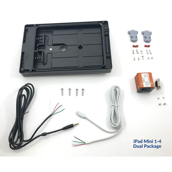 The smartPanel Mount Package for Apple iPad Mini is a flush mounting system to easily dock and seamlessly integrate your existing iPad Mini into your aircraft instrument panel, giving it a clean, professional appearance in an easy to view position! Once installed, the smartPanel mount allows your iPad to be docked in seconds, fully powered and ready for use, and able to be removed in seconds when done! This package gives you the mount along with a panel mounted single 2.7 amp USB-A port that also features a hard-wired 2.7 amp connection from the rear to power the iPad mount! This way you can provide power to an external component like a phone or GPS/ADS-B receiver while keeping your iPad charged! Choose from a Single USB Round Faceplate or Single USB Square Faceplate. The package also includes the Lightning cable to power the iPad, a 3.5 mm audio cable with an open-wiring termination to hard wire to an audio panel as well as the 15-pin D-Sub connector to solder power in/out and a D-Sub cable shield. Full Package Includes: