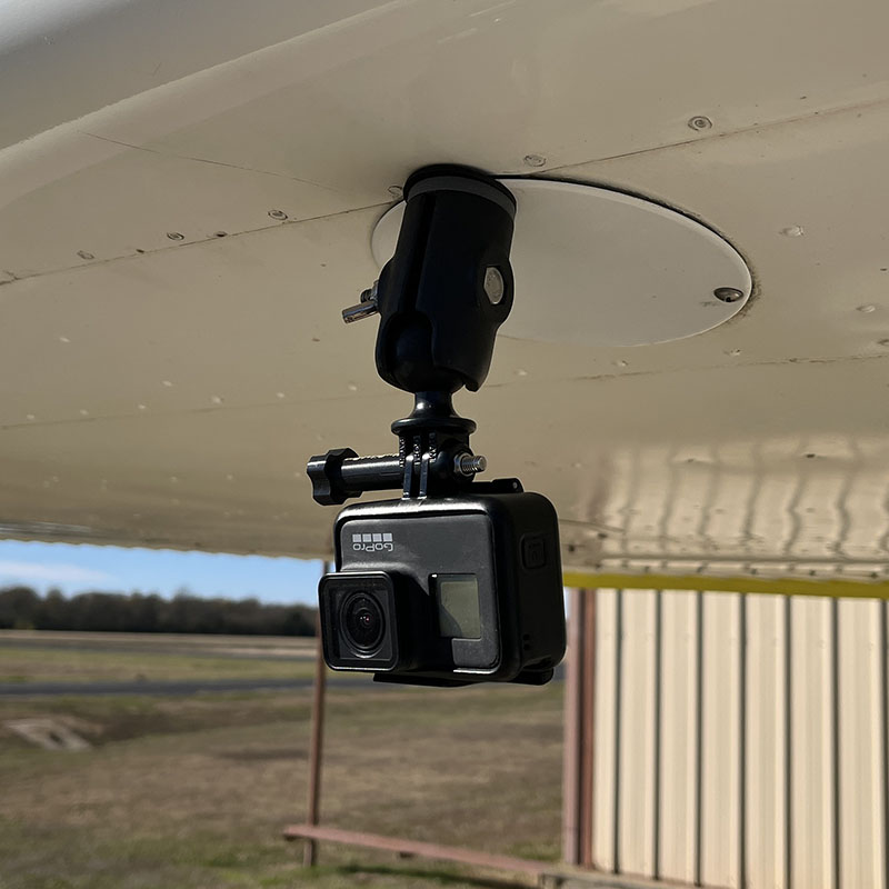Our MyPilotPro Aviator Aircraft GoPro Mount is one of our most requested mounts. It attaches to an existing inspection plate. We precisely manufacture each high-strength, glass-filled nylon puck and couple it with stainless steel hardware. We partnered with Ram Mount® for the GoPro camera swivel arm, allowing users to point their camera in any direction. A neoprene pad prevents vibration from reaching the camera and avoids marring your inspection plate. Easily Secured Aircraft GoPro Mount