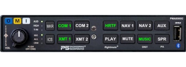 The PMA8000G marks a major milestone in the company’s innovative history. Third generation user interface along with advanced digital processing, makes this a perfect fit for pilots who expect more from their audio panel while not wanting complexity. The PMA8000G is a natural choice for pilots who demand ease of use with a deep set of audio panel capabilities. Introducing flightmate®, the first multi-function digital recorder/audio system available in an audio selector panel. Functions such as creating 4 aural alerts, creating checklists, and an instant aircraft radio playback are all part of this emergency procedures, just about anything that pilot can say, they can store into non-volatile memory, making those checklist chores a bit easier. flightmate® also allows the creation of aural alert that are programmed by the pilot using a few front panel key presses while speaking into the pilot’s microphone. This records these annunciations in locations that are specific to one of the four discrete inputs of the audio panel. Anytime there is a change of state (a out of limit condition or a Sonalert starts to sound off) the associated message will sound out until it is acknowledged. One of the four discrete messages is designed specifically for Sonalerts, the other three are for logic levels, typically coming from electronic engine instruments or other devices that give a change of state during a pre-set condition. IntelliAudio® is another standard capability that will make listening to multiple radio calls manageable. With Com 1 in the 10 O’clock position and Com 2 in the 2 O’clock position, pilots can pay attention to the radio that is most important at any one instant of time. Bluetooth® interconnectivity allows the pilot to have access to their Bluetooth® enabled telephone or entertainment device. The ability to contact ATC by way of the telephone with the engines running and radios tuned and set at an uncontrolled airfield makes getting into the air under IFR condition much easier. And like all of our PMA8000 series, there are front panel configuration that allows both the pilot and copilot to configure the intercom to best suite the needs of the cockpit crew and passengers. We have also included a USB charging port that is rated at 10 watts. This charger provides enough power for iPads that are running the most demanding application. We also took a fresh approach to the user interface, making access to the advance functions much easier than in past iterations of the PMA8000 series.