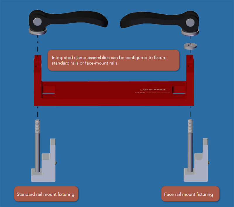 The Quickrax QT200 Installation Spacer Kit for Quickrax 6-32 tray mount rails is the best way to quickly align and clamp the rails to your instrument panel build for alignment drilling the mount holes.