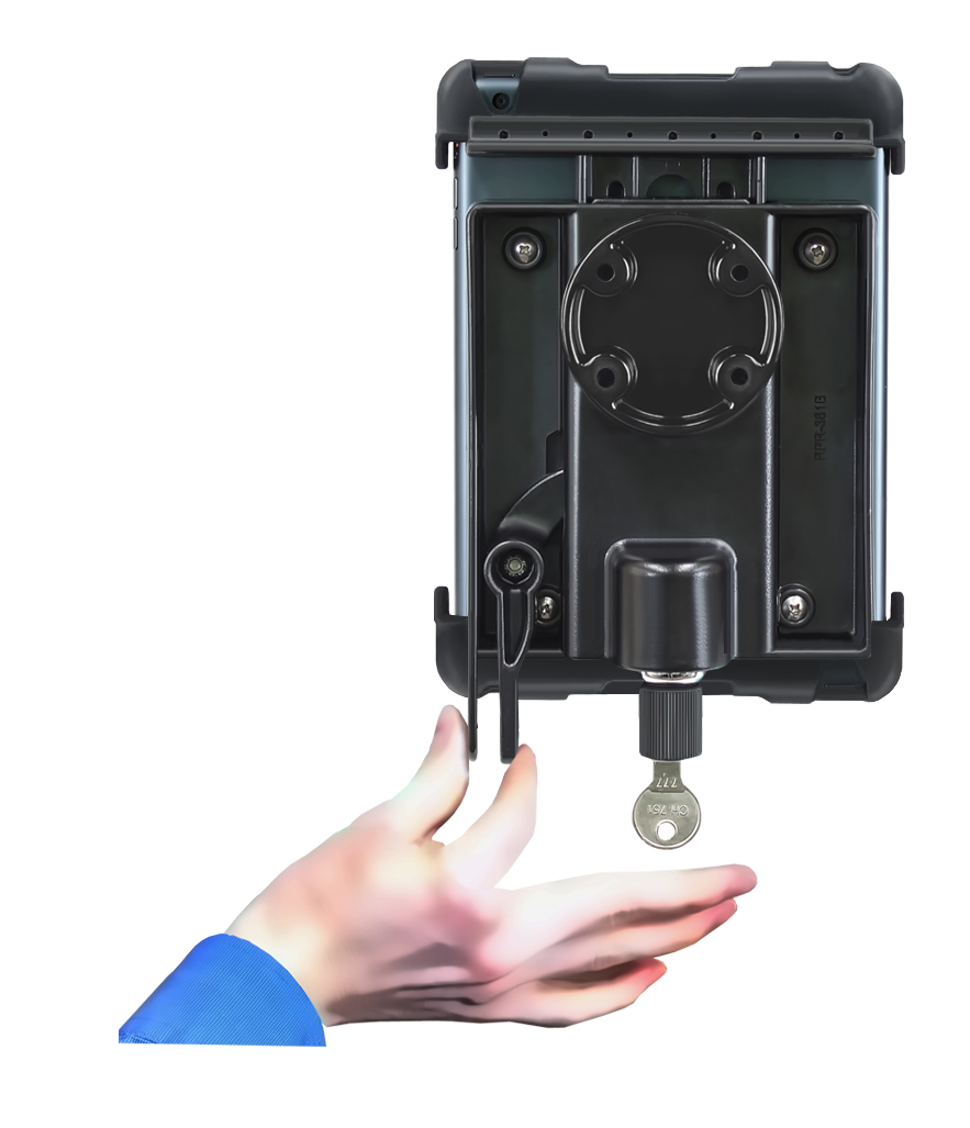 The RAM-HOL-TABL11U consists of a spring loaded backplate, custom support cups and locking mechanism for the iPad mini WITHOUT skin, sleeve or case. This spring loaded design makes it easy to load and unload your iPad mini, along with keeping it secure while on the go. Cup ends are designed to optimize the functionality of your tablet, allowing access to audio jacks, usb, power, and other ports, your iPad mini can be used just as it was intended. Quickly lock the cradle, keeping your iPad mini secure and safe from theft. |