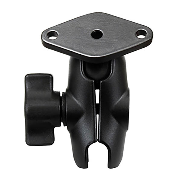 The RAM-B-103-A-238U consists of a diamond base and SHORT double socket arm that will accept 1" ball bases. The diamond base measures 2.43" x 1.31" and contain two holes 1.912" from center to center, positioned at both ends of the diamond base. The hole pattern found on the diamond base will connect to many RAM cradles, as well as third party cradles including mounts with the industry standard AMPS hole pattern. Designed into the mount is a 1" diameter patented rubber ball and socket system with adjustment points at both ends of the socket arm; this with a twist of the arm knob allows for you to maneuver the mount to your optimum viewing position. |
