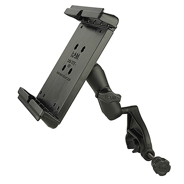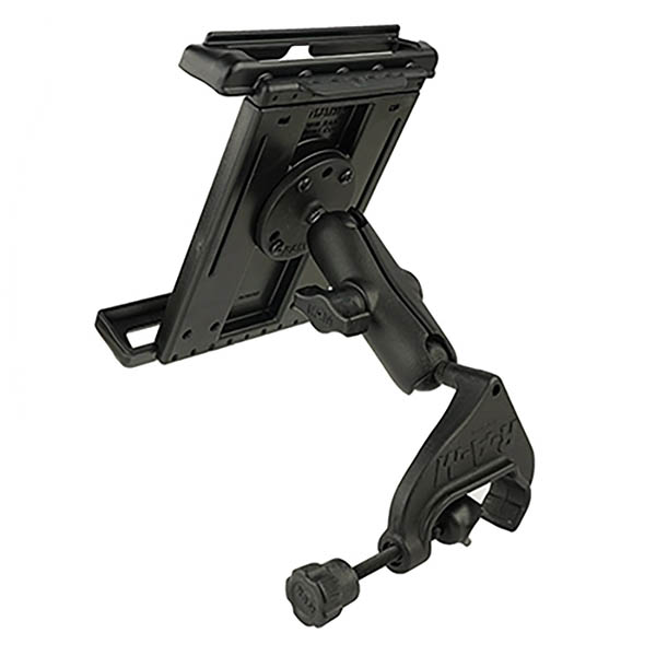 This ideal airplane yoke mount is designed specifically to hold any 8" tablet with a heavy duty case including the Apple iPad mini 6 / 7 as well as all previous iPad mini models, and consists of a RAM Tab-Tite, yoke clamp base, B size medium length double socket arm and round 2.5" base that contains the universal AMPS hole pattern to attach the holder. The yoke clamp base will fit rails in diameter from 0.625" to a maximum of 1.25". The 1" rubber ball is at a right angle to the plane of the mount; when connected to a rail, the ball sits parallel to the rail. The mount is designed with a RAM 1" diameter patented rubber ball and socket system that has adjustment points at both ends of the double socket arm, allowing for almost infinite adjustment and perfect viewing angles. The RAM Tab-Tite spring-loaded, quick release holder offers a secure fit with easy access to the mounted tablet. The custom end cups are designed to optimize the functionality of your tablet, enabling access to all buttons, ports, and tablet functions. Included is a set of four nuts and bolts to attach the holder to any RAMŽ components that contain the universal AMPS hole pattern. The RAM Tab-Tite holder is compatible with any tablet within the listed dimensions. |
