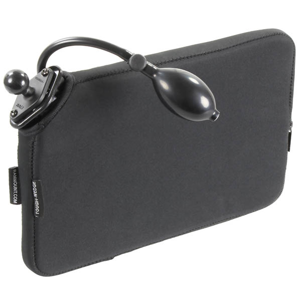 The Tough-Wedge™ is a mount that fits in the gap between the vehicle seat and center console or potentially a center seat. This allows for easy access and operation of a mobile device. The Tough-Wedge™ can also be used for back-seat applications by inserted into the pockets located on the back of the front seats. For capturing video on the go, place the Tough-Wedge™ in your backpack with a RAM camera mount. The included diamond adapter contains the industry standard AMPS hole pattern that allows attachment to a variety of RAM mounts. Hardware included to attach the Tough-Wedge™ to the mount. The 1" diamond ball base is compatible with all RAM-B size single and double socket arms. Included in this kit is an innovative Expansion Pouch accessory for the RAM Tough-Wedge™. This optional accessory is designed to add stability to your wedge mount for vehicle with a larger gap between seats. The Expansion Pouch fits inside the Tough-Wedge™ sleeve and is then inflated with the hand pump to the desired level, ensuring your device stays firmly in place. |