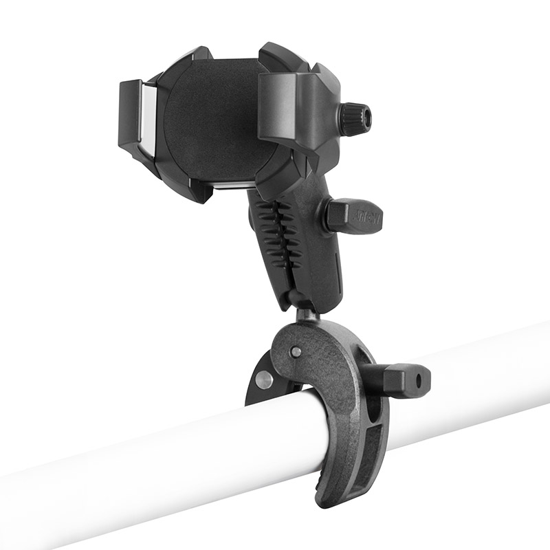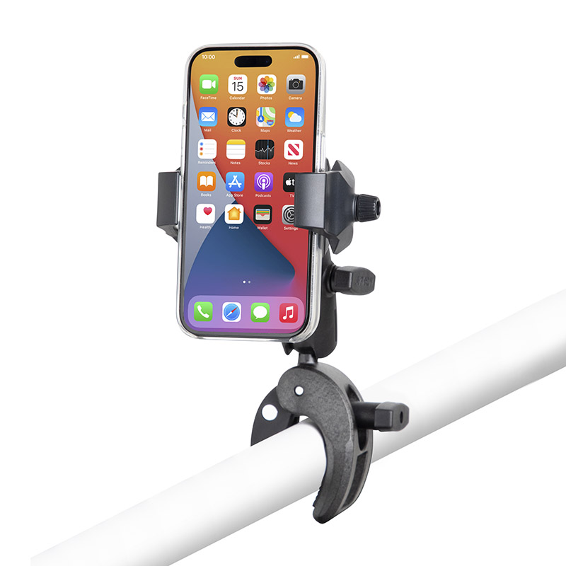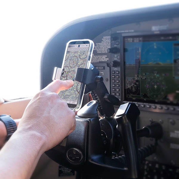 The SkyHold™ Yoke Clamp Phone Mount is the ideal co-pilot for professional and recreational flyers. It allows instant access to your smartphone for in-flight information and flying apps. With a wide-fit clamp that firmly grips steering yoke columns up to 2.75" wide, it securely holds various smartphones, including iPhone and Galaxy models.