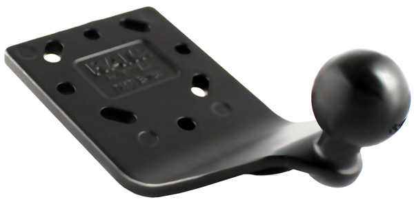 The RAM RAM-B-125BU, curved extension base includes a 1" rubber ball; it allows for almost infinite adjustment and perfect viewing angles. Originally designed to position your GPS in front of the yoke on your plane, the extension plate can also be used in many other applications. The mounting section of the plate is 2.5" square, predrilled holes for many different screw hole patterns, including the universal AMPS hole pattern and all RAM made cradles. The connection section extends approximately 2.25" forward, at a 45 degree angle, from the center of the 1" ball and approximately 1.5'' above the 1" ball (to the bottom of the connection section of the plate). |