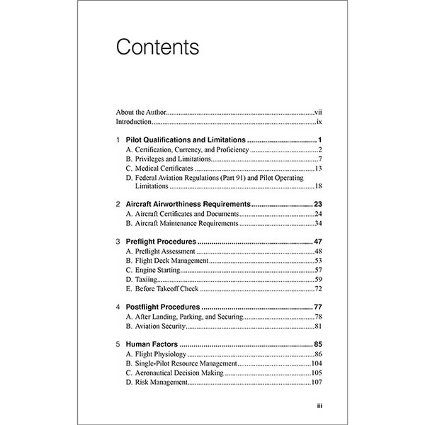 This fourteenth edition of the Private Pilot Oral Exam Guide aligns with the Airman Certification Standards (ACS) and covers pilot qualifications, preflight/postflight procedures, airworthiness, aircraft systems, performance and limitations, airspace, airport operations, weather, flight planning, human factors, night operations, emergency equipment, and more. This resource prepares applicants for the Private Pilot Airplane checkride and is valuable as a general refresher. |