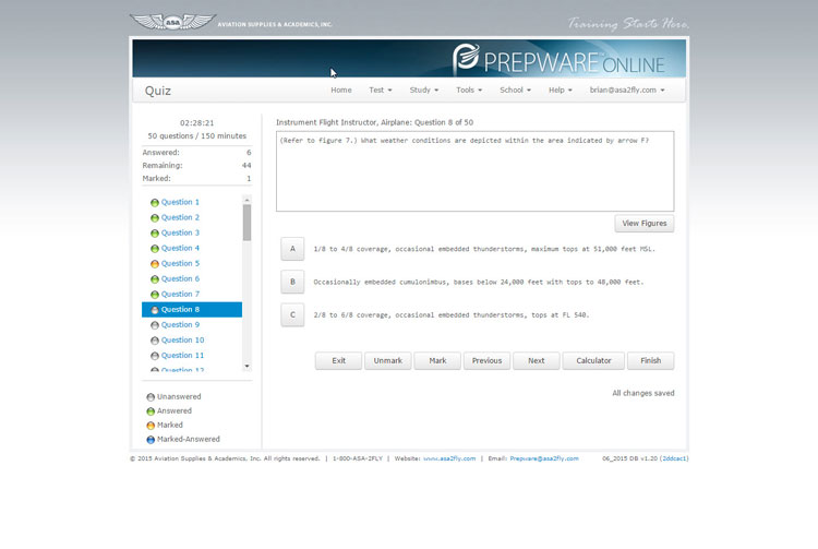 Pass your FAA Knowledge Exam and know what you need to be a safe, competent aviator — from the most trusted source in aviation training. Study by subject, combined subjects, or generate sample practice tests. Questions are supported with explanations for correct and incorrect answers, references for further study, and airman test report codes for remedial study. The CX-2 electronic flight computer is accessible with a click of a button and test authorization (endorsement) can be obtained from your instructor or from ASA at no additional charge. Access Prepware Online on all your internet-connected devices for the ultimate in flexibility. Log in from your desktop, laptop, smart phone, iPad or other tablet computer with access available for 24 months (after you activate your account). Prepware Online can be utilized as a stand alone study tool providing access to any one of the following FAA Knowledge Test databases.