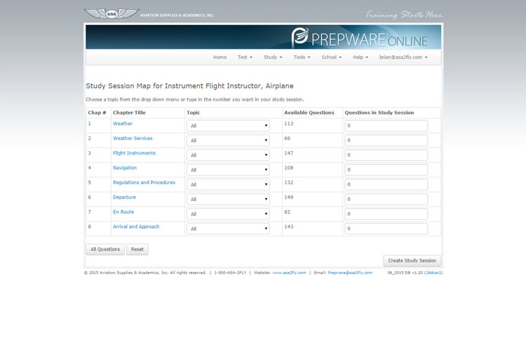 Product Name (ASA Product Code) | User | Expiration date | Practice Tests | Self-Study | Student, Instructor, School Affiliation |
