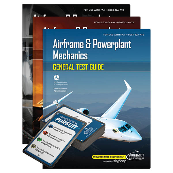 Prepare for your A&P written and oral exams with this Examprep package including the set of three 8083 Test Guides and set of 400 A&P Professional Pursuit flashcards featuring four categories of General, Airframe, Powerplant, and Avionics. |