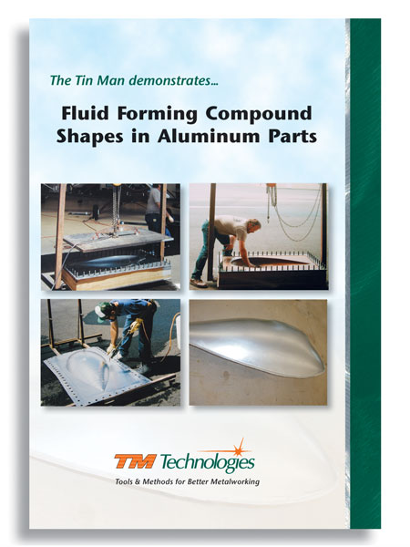 Use water pressure and a cavity to form sheetmetal parts, with either city water pressure or an inexpensive high-pressure pump. See detailed coverage of the pressures required for various sized parts, the inexpensive pumps available, and some engineering designs for the cavities. We make aluminum shapes that are smooth and free of marks, although other types of sheetmetal can certainly be "inflated" into some interesting shapes.