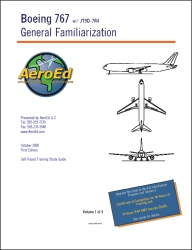 General Familiarization manual for the Boeing 767 aircraft including both Pratt & Whitney JT9D-7R4 and GE-80C2 engines. General Familiarization Manuals are study guides covering a general approach to each model aircraft. They are great tools for review, new hires, prerequisite training, and preparations for systems level classes. These manuals and courses can are an economical approach benefiting students, technicians, teachers, MRO training departments, and airlines maintenance departments alike. Each manual covers an overview of that aircraft's mechanical systems including description and operation, controls and indications, component locations, and servicing. Aero Ed manuals and courses follow ATA 100 format and ATA 104 Level requirements. In addition to the manuals, AeroEd offers a complete and certificated self study GenFam course for the Boeing 767 aircraft. The self study course includes a personal on-line advisor, stage and final testing, a certificate of completion, and 48 FAA AMT Award credit hours. The course may be now in addition to the manuals or at a later time after the manual purchase for only the upgrade price. This course is a tremendous value for student and seasoned A&Ps looking for their first job or to advance their careers. Having these prerequisite skills before the interview will guarantee that your resume gets on top of the pile. For repair stations and employers, self study is an economical method to prepare your trainees, considering both the cost of the program and for those who can't afford to take their AMTs out of the hangar and away from their jobs. |