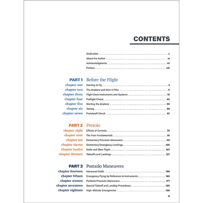 This softcover manual covers everything you need to know for your first flight, presolo, post-solo maneuvers, cross-country, and night flying. First published in 1960 and updated continuously since then, this new 12th Edition features color figures and enhanced instruction to ensure you will be prepared for the classroom, tarmac, and flight deck. A gathering of material used in preflight and postflight briefings accompanies in-flight instruction, all provided by one of the greatest flight instructors of our time. A synopsis of what to expect for your FAA Knowledge Exam and checkride will reassure any student or renewing pilot. Intended to do more than help you “get past” the exam and checkride—this book also features the essential information used in the day-to-day processes of flying airplanes. |