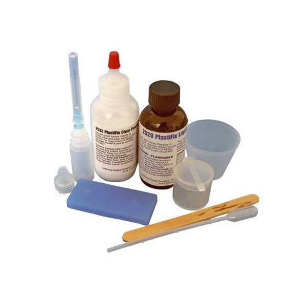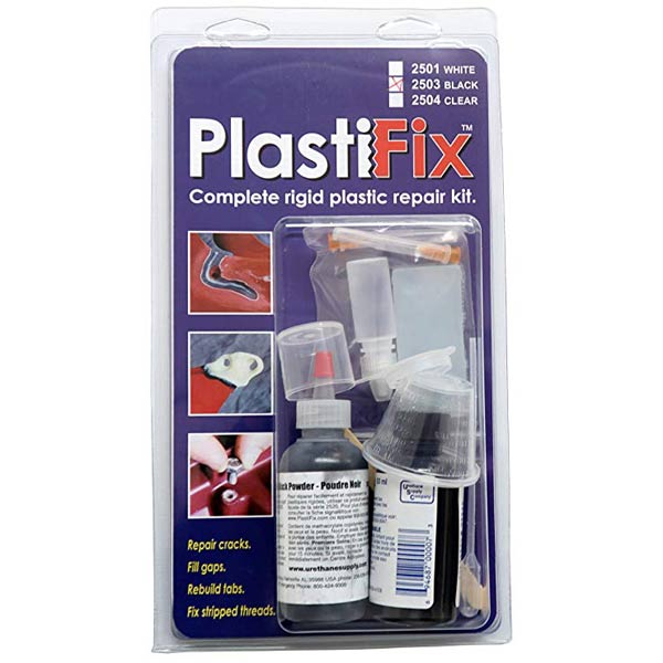 Plastifix repairs virtually any rigid plastic and works exceptionally well on ABS. Repair cracks, fill gaps, reinforce repairs, rebuild broken tabs, fix stripped threads, and more. PlastiFix's most unique feature is the FlexMold molding bar which allows you to create a mold and cast missing pieces. No other plastic repair is more versatile. the 30-gram kits are enough to complete approximately 24"+ of cracked plastic repair. The large kits will do about 24 feet. |