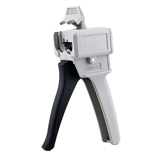 Manual adhesive dispenser designed for use with Click Bond two-component adhesive cartridges. The dispenser handle is paired with specific slides for proper dispensing of materials of various component ratios.