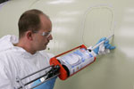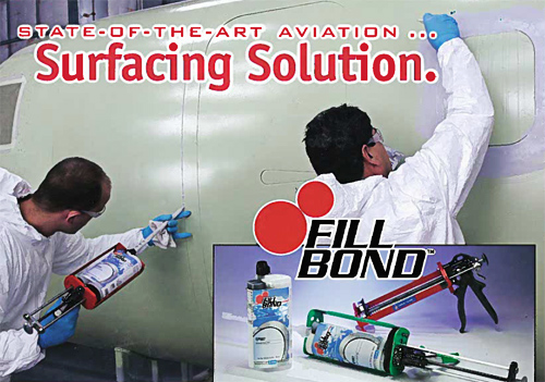 Fill Bond aerospace putty from Sherwin-Williams Aerospace Coatings has been created specifically for aerospace use. Designed to fill rivets, seams and small spot-repair areas on the exterior of aircraft fuselage and wings, this high-build body filler is now available in a convenient epoxy version.