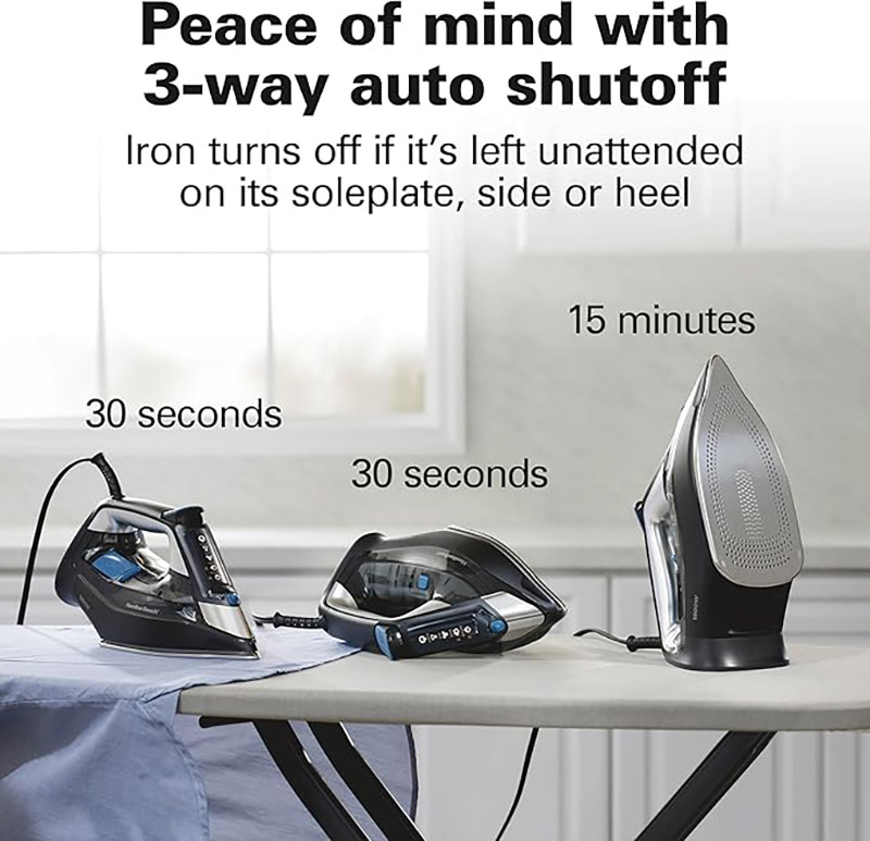 Keep your clothes looking smooth with the premium ironing performance of the Hamilton Beach® FabricIQ™ Steam Iron. It's loaded with innovative features to make ironing faster and easier than ever. On top of the handle, its intuitive FabricIQ™ touchpad lets you instantly select your fabric and temperature setting with one touch. As you iron, the durable stainless steel soleplate provides an effortless glide, and the precision tip easily reaches into tight spaces. Carefully arranged across the soleplate's surface are more than 360 steam holes, which ensure that fabrics are covered with wrinkle-releasing steam. When you need to iron a bunch of clothes without stopping or vertically steam hanging trousers or curtains, the extra-large water fill door and 350 ml water tank provide easy filling and fewer refills. The 10 foot pivoting cord gives you plenty of reach as you iron, and it's designed for both left- or right-handed ironing. Equipped with powerful steam blast, spray and vertical steam to tackle wrinkles on hanging clothes. Includes 3-way auto shutoff for peace of mind, anti-drip feature and self-cleaning function. |