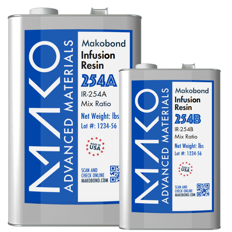 Makobond Infusion Resin 254 is an advanced low viscosity infusion resin engineered for high temperature applications in various parts and structures. With its easy mix formulation and favorable flow characteristics, IR-254 facilitates the production of exquisite, finished products, ensuring a seamless, void-free surface. This cutting-edge system not only cures effectively at room temperature but also provides exceptional performance in environments requiring elevated temperatures. Its versatility makes it suitable for a wide range of applications, offering a reliable solution for industries where both quality and durability are paramount. Whether used in aerospace, automotive, or other high-performance applications, IR-254 delivers outstanding results. Fully cured parts exhibit a Glass Transition Temperature (Tg) of 307°F (153°C). |
