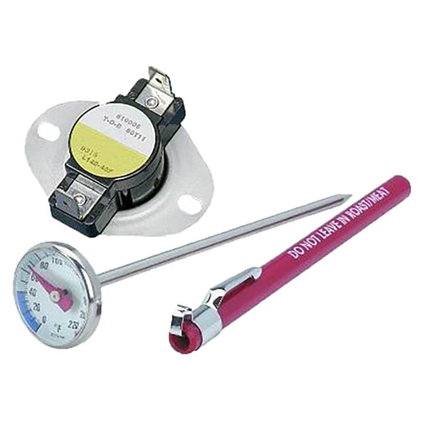 This kit consists of one post cure thermometer (P/N 01-00394) and 1 regulating thermostat (P/N 08-12148) that allows control of electrical devices for heating.