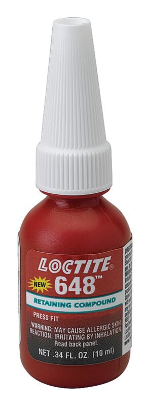 LOCTITEŽ 648 Retaining Compound: Press Fit / High Strength / Rapid Cure. A retaining compound recommended for continuous working temperatures up to 356°F (180°C). Fills gaps up to 0.006 in. diametral clearance. Fixtures in 10 minutes. Technical Data: