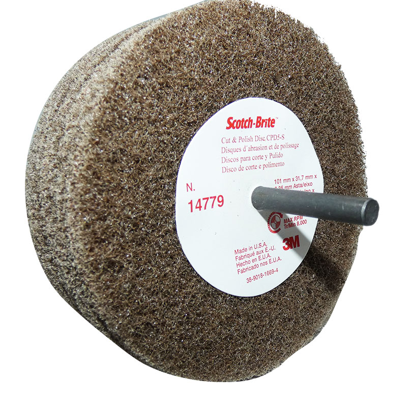 The Scotch-Brite™ Cut and Polish Disc is engineered to produce satin or high-lustre finishes and may be used for cleaning or light deburring on a variety of metals. This disc's durable open-web construction is designed to resist loading and greatly increase the life of the disc.
