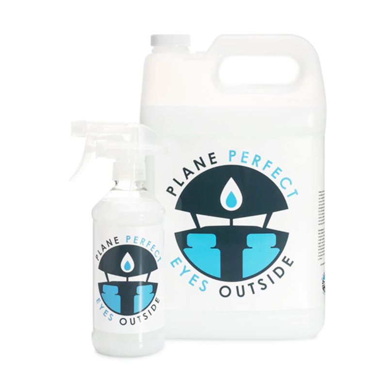 Directions: For best results and to avoid scratching, use a Plane Perfect Max Loop Glass microfiber Towel. Apply Eyes Outside liberally to the surface to be cleaned. Allow time for bugs to rehydrate. Wipe with clean towel in a single motion. Turn over towel to expose a clean section and once again use a single motion to dry to a high shine. For a heavy coating of bugs (or that one giant bug that swooped down into the center of your windshield on short final) repeat application on stubborn areas and allow more time for rehydration. For optimum results, do not allow Eyes Outside to dry on surface.