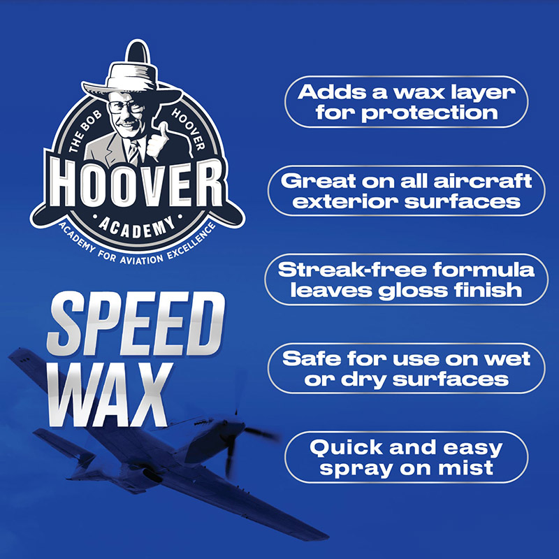 Designed with pilots in mind, Bob Hoover Speed Wax delivers a high-gloss finish in seconds. Safe on aircraft exterior surfaces, simply spray on and wipe off for a long-lasting shine. Good on wet and dry surfaces. Avoid using on windows. A portion of each sale benefits The Bob Hoover Academy 501 |