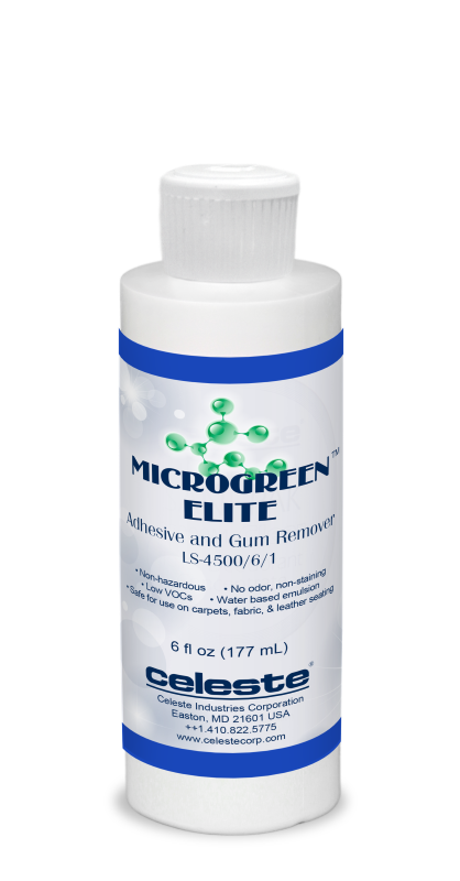 | MicroGreen Elite is a water based microemulsion, adhesive and gum remover. Unlike most adhesive and gum removers, MicroGreen Elite does not rely on high percentages of hazardous or flammable solvents to be effective, making it both user and environmentally friendly. This product comes packaged in either quart or 6 oz. bottles with a convenient flip-top cap for easy-to-target application. |