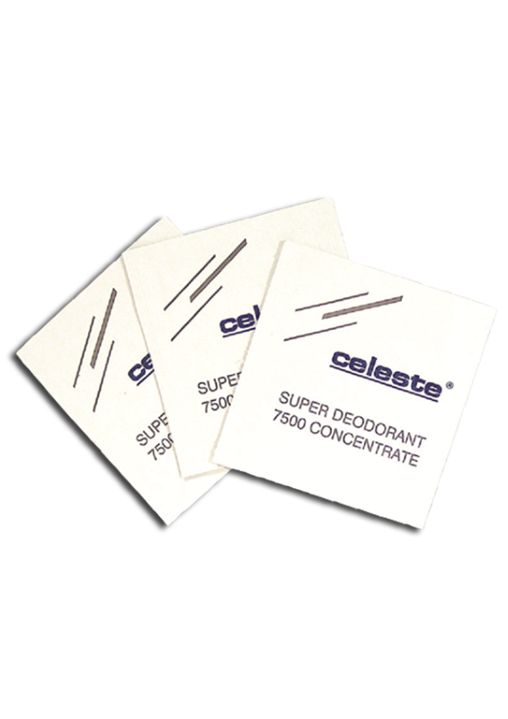 Celeste Super Deodorant offers an intense fragrance for a short duration, making a malodor until the source of the malodor can dealt with. It works by emitting a strong fragrance for a short time.