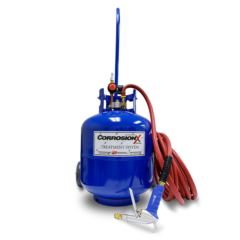 The Handi-Spray application systems were designed to atomize CorrosionX, CorrosionX® Aviation, CorrosionX® Extended Duty, NavGuard and other liquids into an incredibly fine, smoke-like fog. This fine atomization converts low and medium viscosity liquid products into micro-droplets, which stay suspended in the air for an extended period of time. This degree of atomization is key for achieving the most cost-effective and thorough application of corrosion preventative compounds into airframes and other irregularly shaped enclosures where direct application is not practical (e.g. around blind corners, unreachable areas, etc.).
