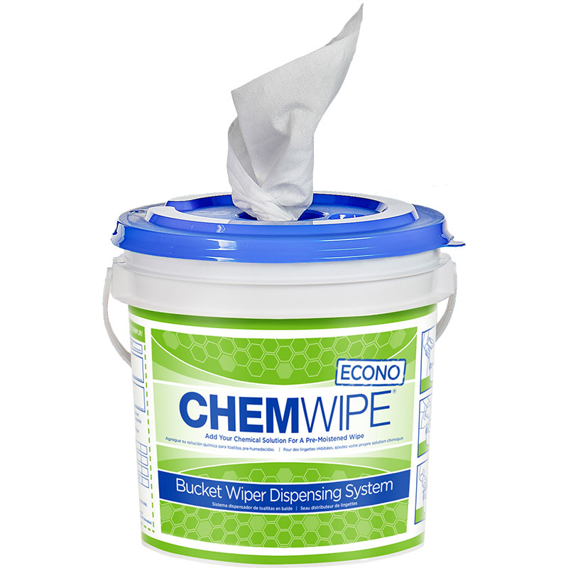 A disposable wipes and bucket cleaning system that allows end-users to add their own chemical to create a custom pre-moistened wipe. The MIGHTYWIPE® material, made from a cellulose and synthetic base, has excellent strength and absorbency with low lint properties, providing an ideal material for heavy-duty cleaning, wiping, degreasing and surface prep. |