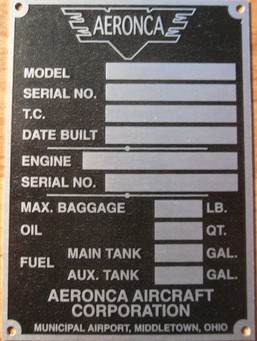 Data plate is perfect copy of original. I stamped it and it looks awesome in my 15-AC Sedan. This was the data plate used in all the airplanes that were manufactured in Middletown.