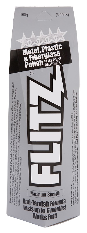 Flitz is a non-abrasive metal polish which can be used on all metal surfaces including polished aluminum, painted surfaces, and fiberglass. Removes exhaust burned soot on paint. It is easy to apply and remove, and leaves a protective film to protect shiny surfaces up to 4 months A very popular multi-purpose polish. |