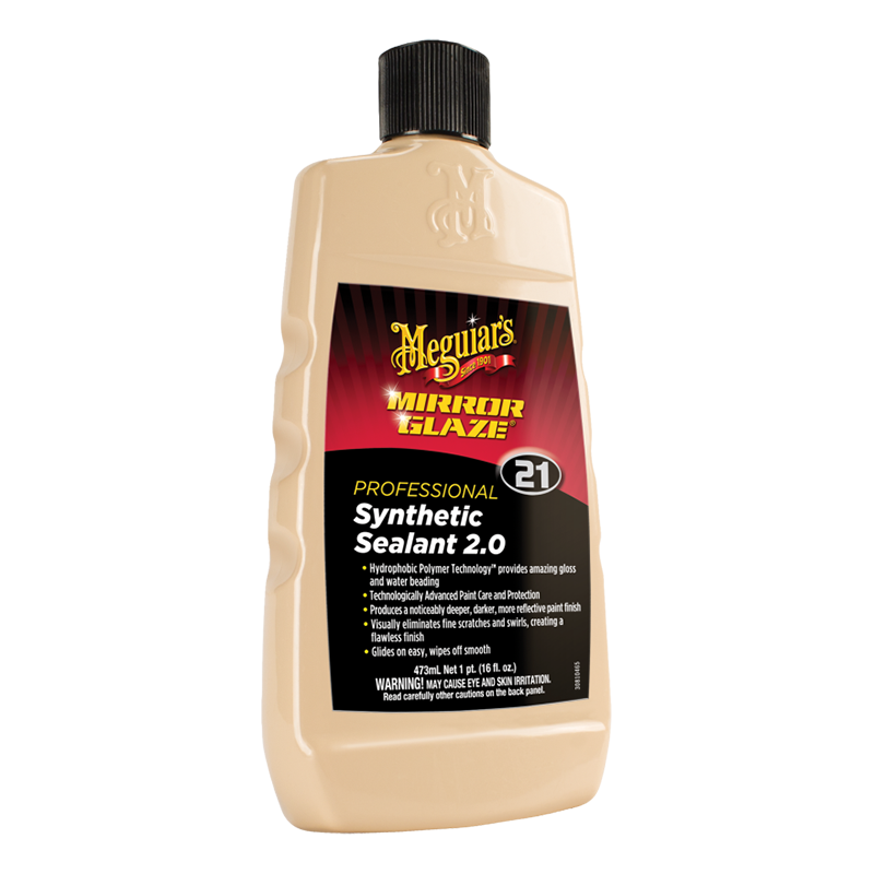 Meguiar's® Mirror Glaze® Professional Synthetic Sealant 2.0 is synthetic polymer formulation that provides technologically advanced paint care and protection. It produces a noticeable deeper, darker, more reflective paint finish while advanced synthetic polymers deliver extreme protection. This professional grade sealant also visually eliminates fine scratches and swirls, creating a flawless finish while providing amazing gloss with Hydrophobic water beading action. It glides on easy, with a smooth, resistance-free wipe-off making it extremely easy to use while delivering an amazing finish. |