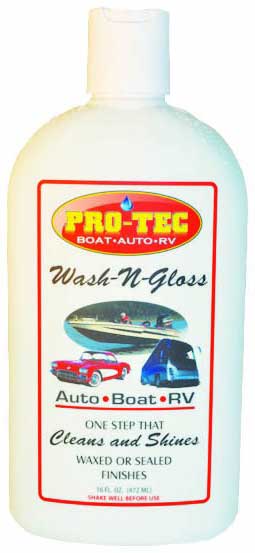 Cleans fiberglass and painted surfaces leaving a microscopic film of protection, enhances shine and repels water. Pro-Tec Wash and Gloss Cleans fiberglass and painted surfaces Leaving a microscopic film of protection Enhances shine and repels water PRO-TEC WASH AND GLOSS can be used in direct sunlight. |